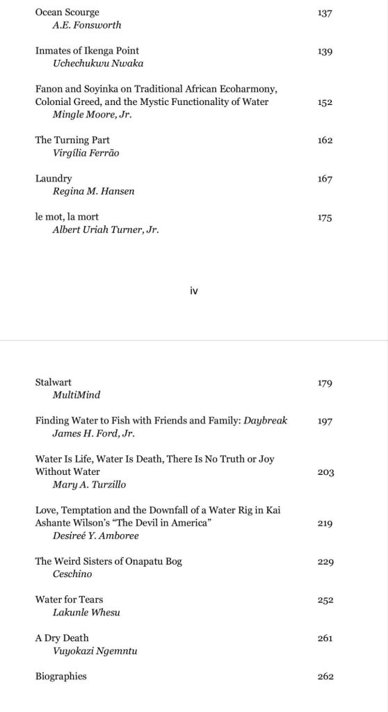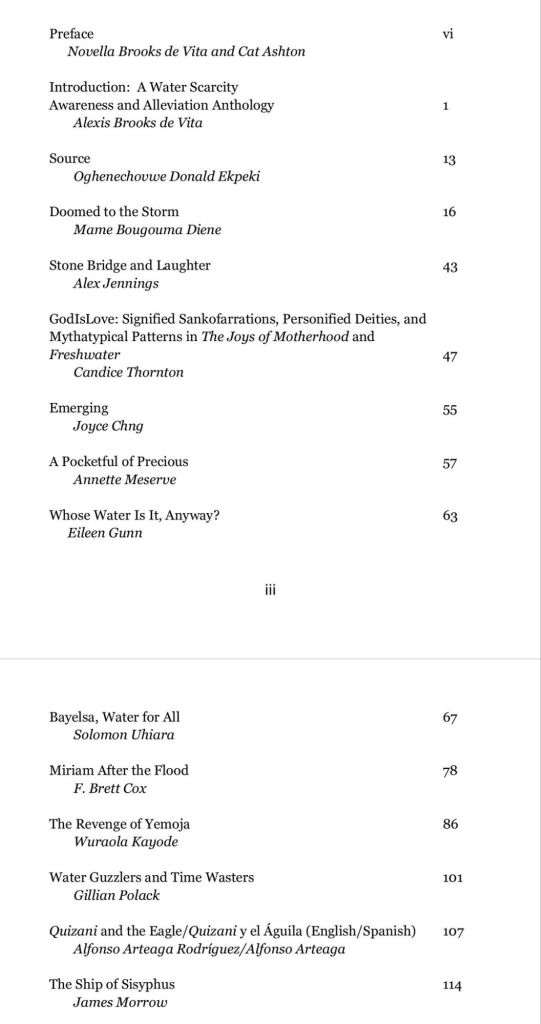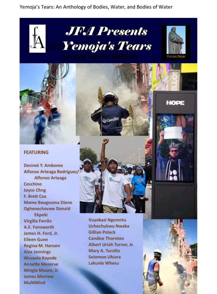 Yemoja’s Tears: An Anthology of Water, Bodies, & Bodies of Water is a charity anthology aiming to draw attention to water scarcity, drought, flooding, forest fires, climate change & related issues round the world. It’s proceeds will go to Wateraid Water For People Baitulmaal. You can see it’s toc below