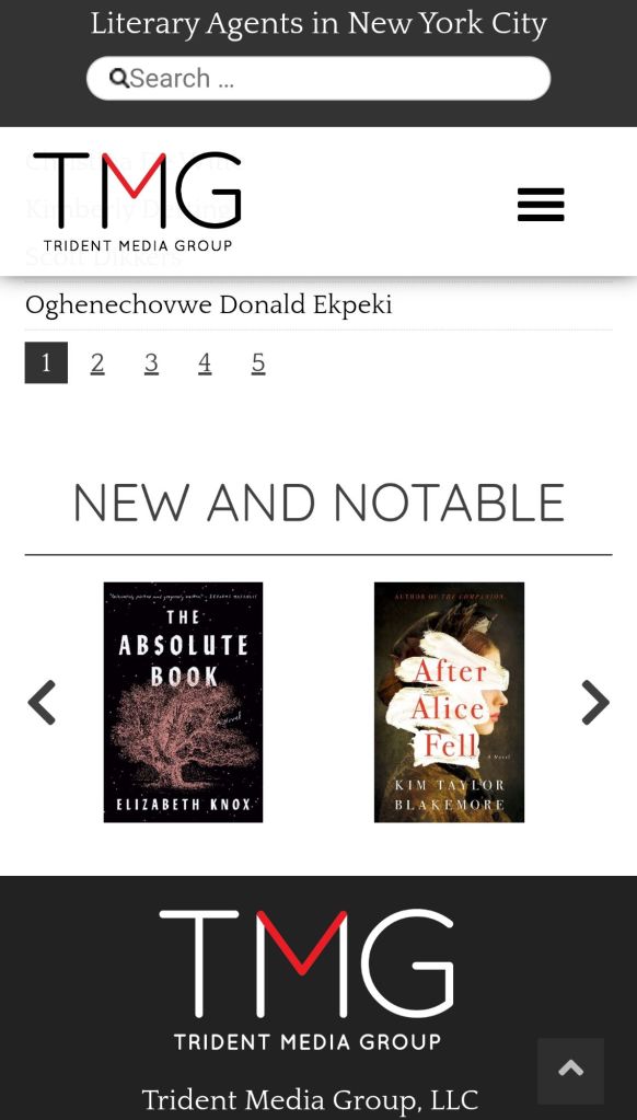 My literary agent is Trident Media Group’s Vice president, Mark Gottlieb.